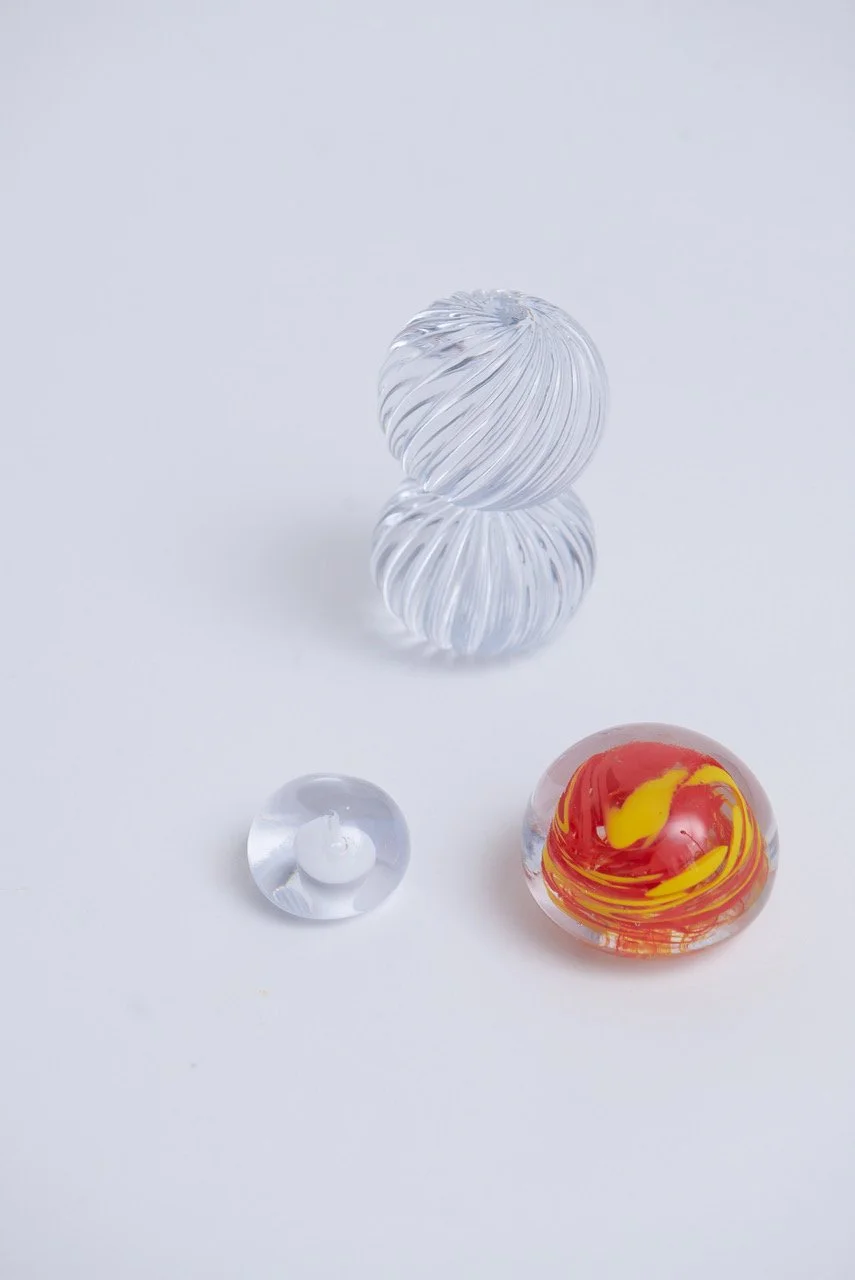 In 2020, Nina Nørgaard was invited by GANNI’s Creative Director, Ditte Reffstrup, to participate in the GANNI Kiosk—a visionary project bringing together 10 female artists to share their perspectives on what the year 2020 would bring. While the world was unexpectedly shaped by the global pandemic, Nina Nørgaard’s contribution focused on a dream of sustainability and joy. The project became an exploration of recycled glass and a celebration of playfulness, challenging the traditional boundaries of glass design during a time of isolation. A highlight of the collaboration was a series of hand-sculpted glass knobs—small, functional pieces of art designed to personalize furniture and interiors, echoing GANNI’s DIY spirit and introducing what was later to become a Nina Nørgaard classic.