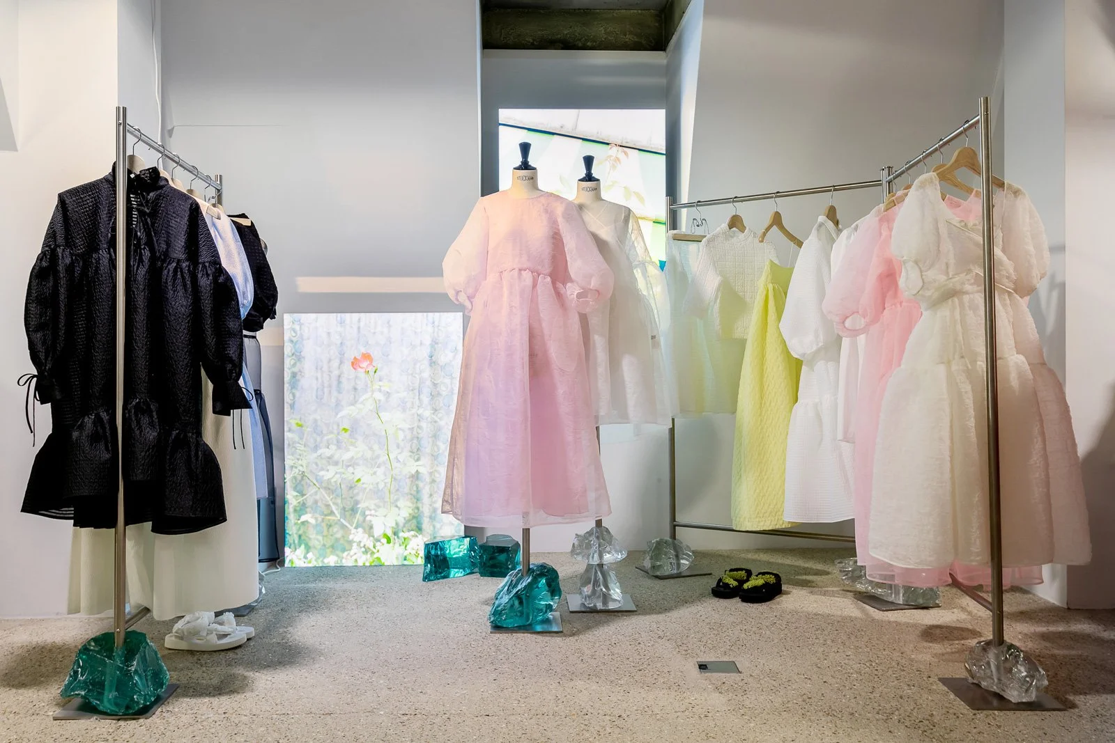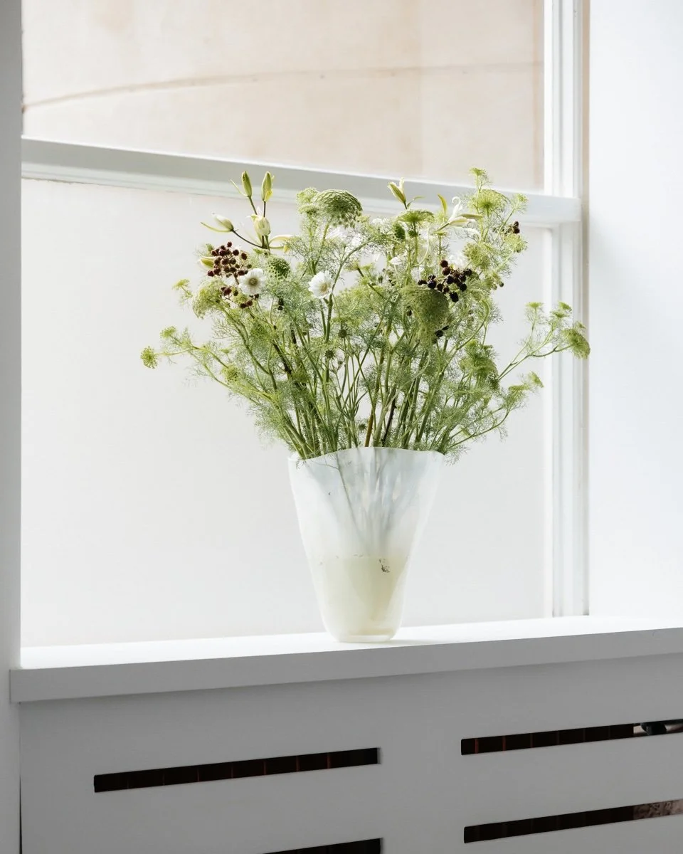 The collaboration between Cecilie Bahnsen and Nina Nørgaard started when Nina Nørgaard designed a number of Récif vase objects for a Cecilie Bahnsen show in London in 2019. The vases have since become a Nina Nørgaard classic. For Cecilie Bahnsen’s runway show during Paris Fashion Week 2022 Nina Nørgaard presented 250 hand-blown glass pieces that draw on shared interests in texture, lightness, and form. The work reflects a quiet dialogue between glass and fabric, where the material qualities of each are explored through a mutual attention to detail and process. The pieces formed a subtle sculptural counterpoint to the collection - and is one among many collaborations between the two designers over the years.
