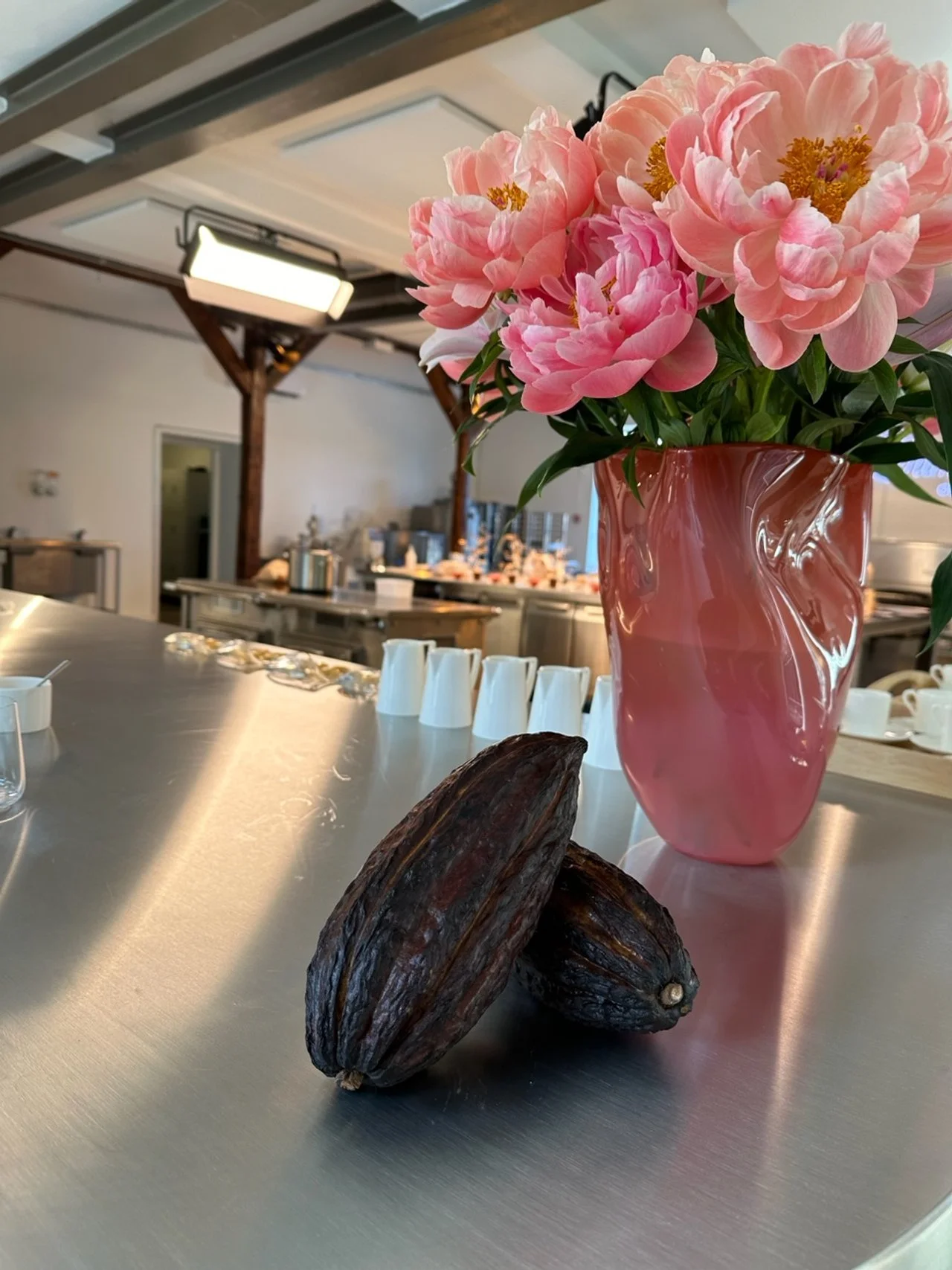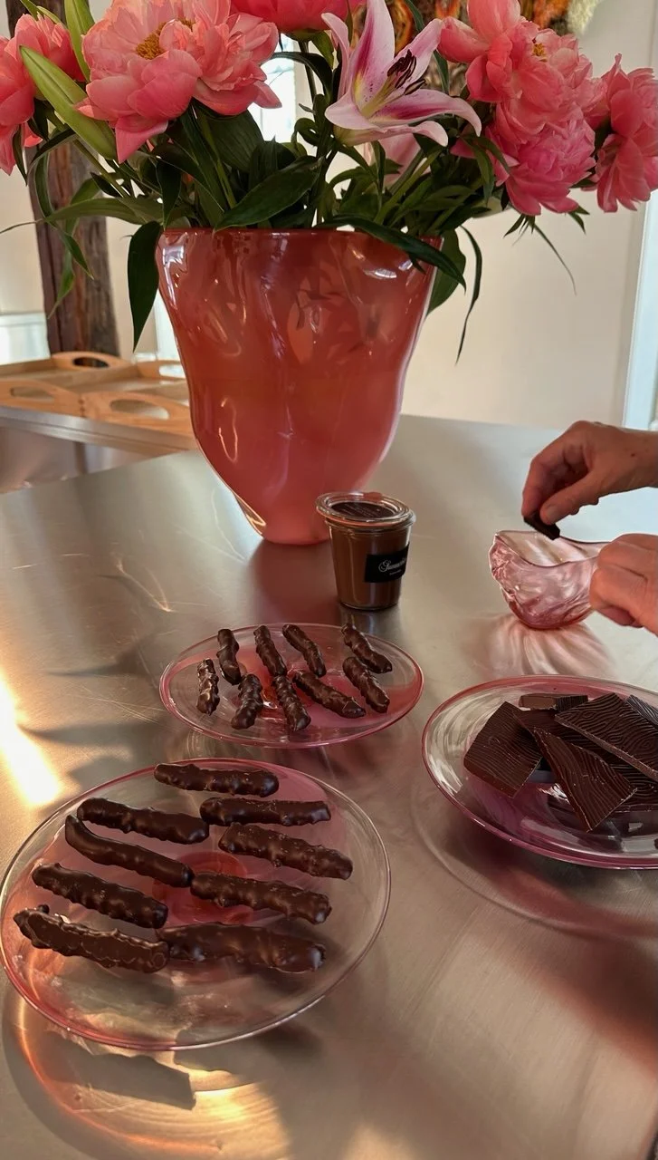 In her collaboration with Summerbird Organic, Nina Nørgaard explores the parallels between two ancient, transformative materials: molten glass and tempered chocolate. The project is a celebration of "the liquid state" – the brief, magical window where both materials are fluid, glowing, and full of potential. The glass vessels are designed to retain the visual energy of liquid. With their soft, undulating edges and organic depth, they appear as if they are still in a state of flow – a perfect mirror to the smooth, melting texture of Summerbird’s chocolate.